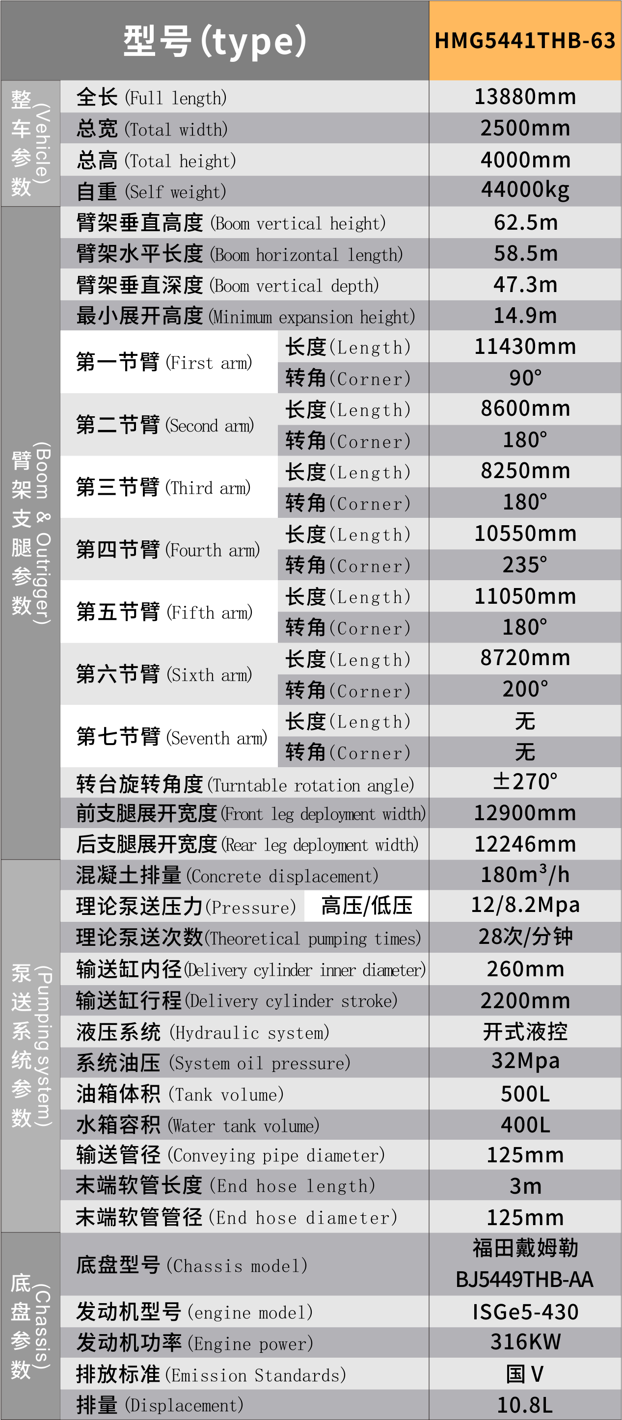 型號:HMG5441THB-63 參數(shù):底盤:四橋福田/四橋奔馳/四橋五十鈴
