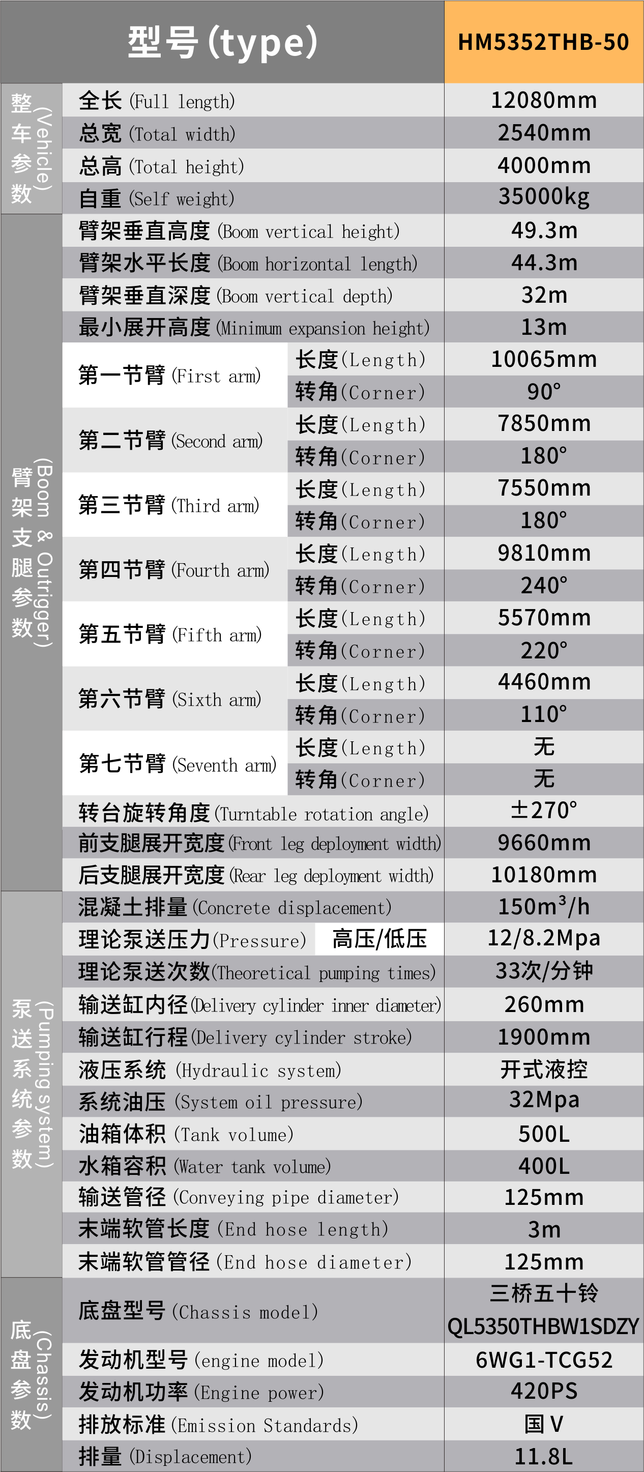 型號:HM5352THB-50 參數:底盤:三橋五十鈴